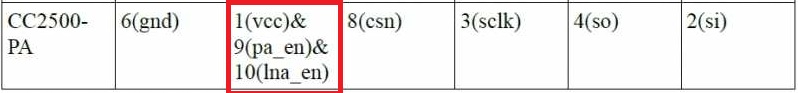 No, they can both be enabled at the same time. the PA_EN powers up the power-amp (transmit amp). The LNA_EN powers up the low-noise-amplifier (receiver amp). It is perfectly valid for both to be enabled simultaneously though it does draw more power that way. Since we don't have enoiugh pins to actually manage these connections, tying them always on is what I've done. It is possible it will reduce the overall performance of the CC2500 module, but I haven't really tested yet. Note that this has nothing to do with the CC2500. These connections are (as far as I'm aware) only for controlling the external amplifiervlad_vy wrote: PA_EN: When Tx status set '1', Rx set '0'