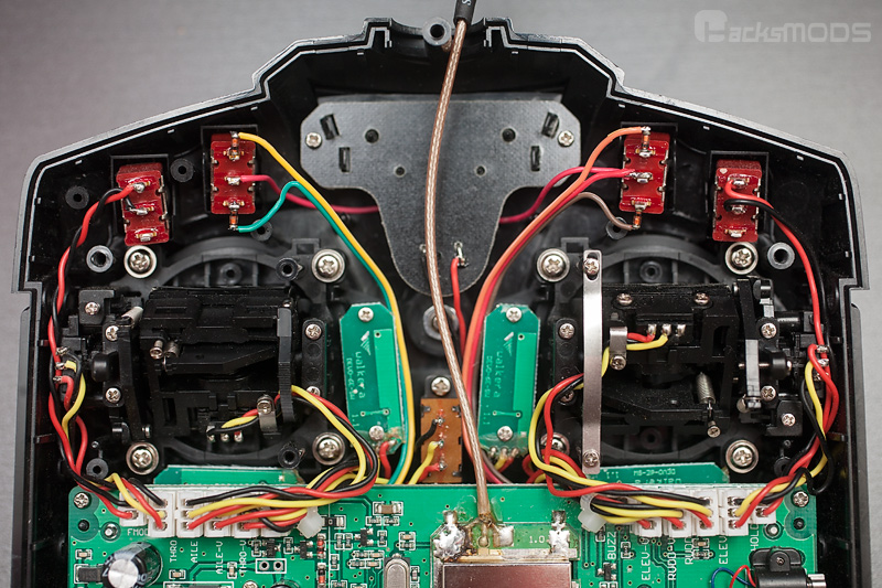 As for the wire routing, if they're long enough, you can carefully guide them around the transmitter module and out the top to the switches.