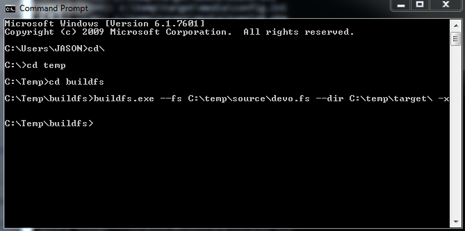 buildfs.exe --fs c:\devo\devo.fs --dir c:\devo\FSDESTINATION -x