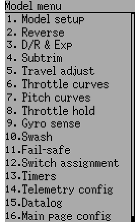 根据在:ref:`model-setup`中选择的混控的界面类型不同,模型菜单也会有所不通。