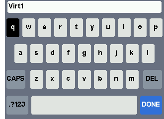 If you press ENT on a virtual channel a keyboard screen is shown where you may edit the default name. You can use L/R/UP/DN buttons followed by ‘ENT’ to select. Or just touch each character.