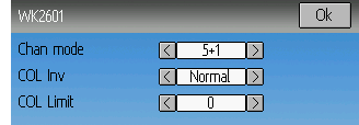WK2601プロトコルは追加オプションもサポートしており、WK2601が表示されているときにProtocolスピンボックスを押すことでアクセスできます。